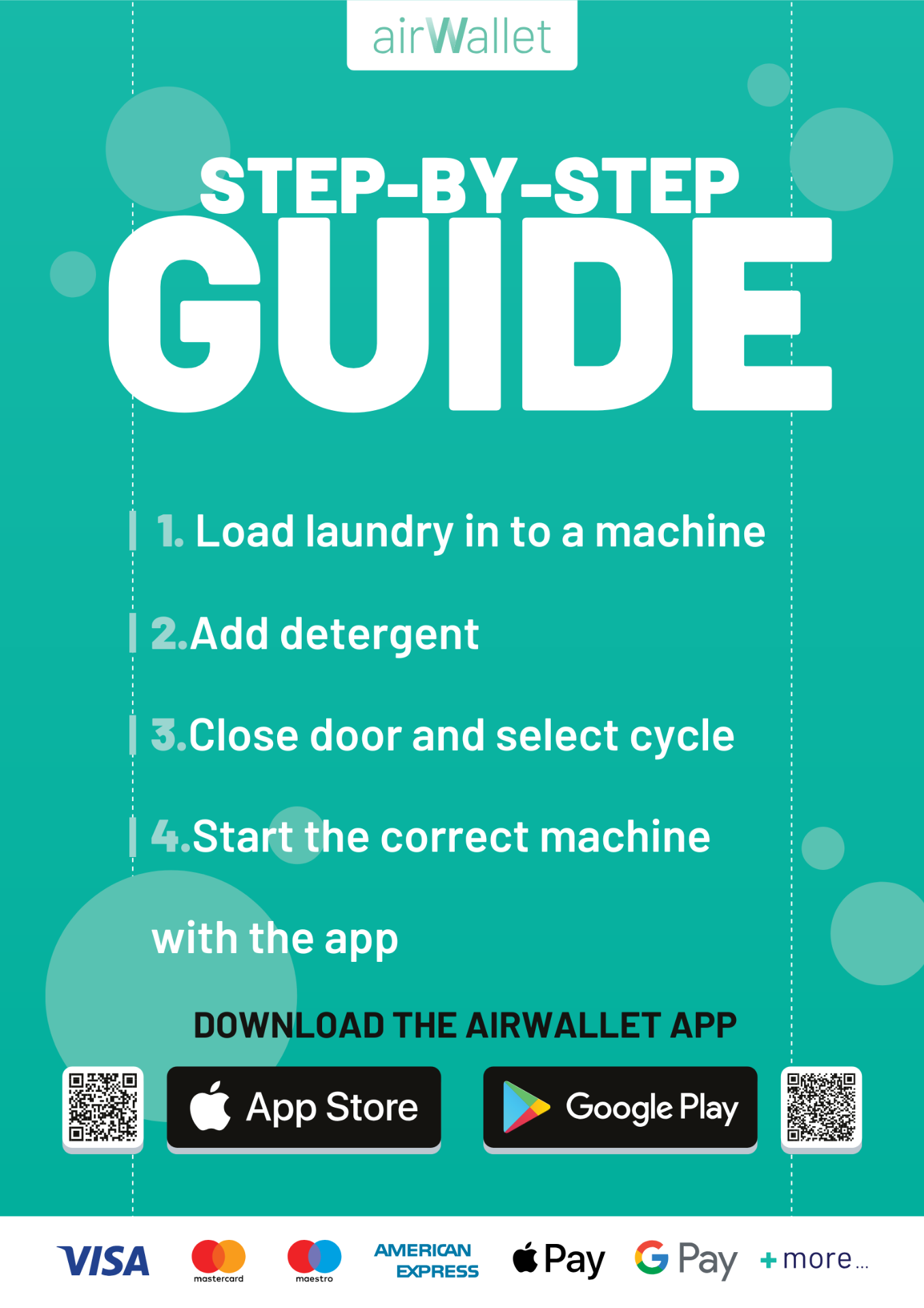 Reserveren en betalen van een was/droogbeurt kan uitsluitend vis de airWallet-app mits je binnen 500 meter van de wasruimte bent.